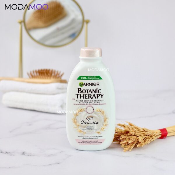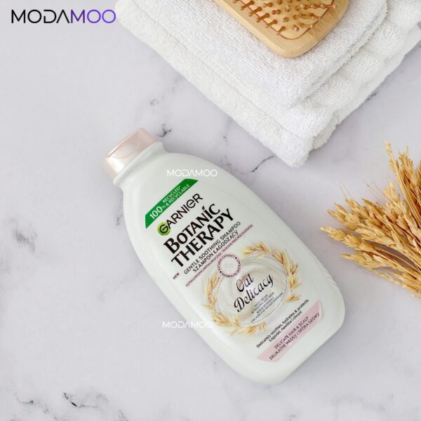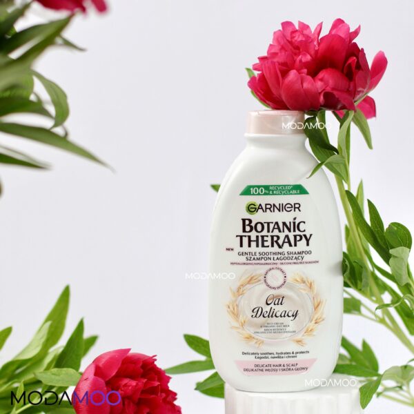 شامپو آبرسان و محافظت کننده موی نازک و پوست سر جو دوسر و شیر بوتانیک تراپی گارنیر یک داروی سبک ترکیب شده با شیر جو و کرم برنج که موها و پوست سر را تا ۷۲ ساعت مرطوب می کند. تست آلرژی متخصص پوست برای ایمنی تست شده است.